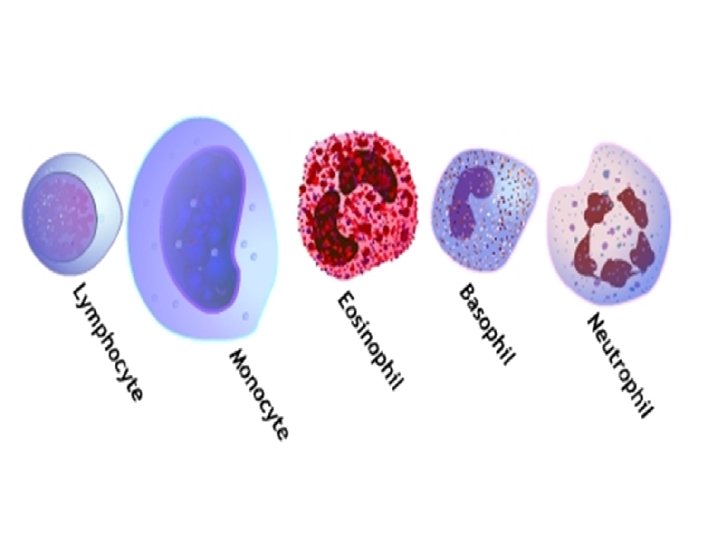 Agranulocytes • 1 -Lymphocytes: 20 -40% of WBCs, about the size of a RBC, dark blue or purple nucleus, sparse gray/blue cytoplasm. Important role in immune system.