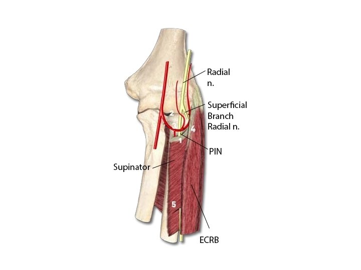 Radial Nerve • Radial nerve compression: rarely compressed and mainly motor symptoms • Radial Tunnel Syndrome – lateral elbow and radial forearm pain – no motor or sensory dysfunction