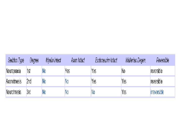 Classification • Neuropraxia • Axonotmesis • Neurotmesis