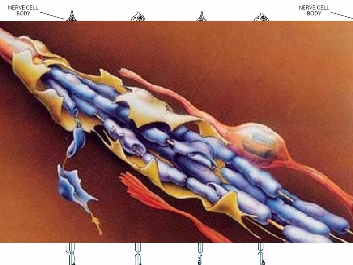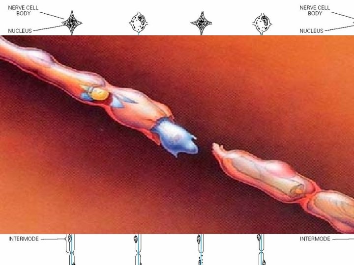 Segmental demyelination • The term implies injury of either myelin sheaths or Schwann cells, resulting in breakdown of myelin with sparing of axons • This occurs in immune-mediated demyelinating neuropathies and in hereditary disorders of Schwann cell/myelin metabolism.