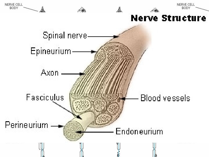 Neuronopathy • Primary loss or destruction of nerve cell bodies with resultant degeneration of their entire peripheral and central axons. • Either lower motor neurons or dorsal root ganglion cells may be affected. • When anterior horn cells - poliomyelitis or motor neuron disease: focal weakness without sensory loss • Sensory neuronopathy, or polyganglionopathy : damage to dorsal root ganglion neurons - inability to localize the limb in space, diffuse areflexia, and sensory ataxia.