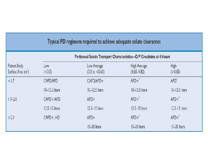 TYPE Day exchange Night exchange Volume of exchange CAPD 2 -3 1 -2 1 -3 CCPD 1 3 -4 1 -3 NIPD 0 3 -5 2 -3 TDP 0 20 1 -1. 5