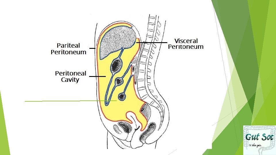WHAT is the Peritoneum? Thin serous membrane: lines abdominal cavity and viscera within it Parietal Peritoneum Visceral Peritoneum Peritoneal Space: Potential Space between the Parietal and Visceral Peritoneum, contains peritoneal fluid
