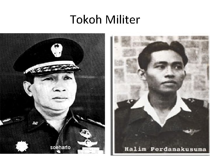 TOKOH • • Ir. Soekarno Dr. Soebandrio Jenderal A. H. Nasution Let. Jend Ahmad Yani Mayjend Soeharto Mr. Ali Sastroamidjoyo Mr. Wilopo Mr. Burhanuddin Harahap