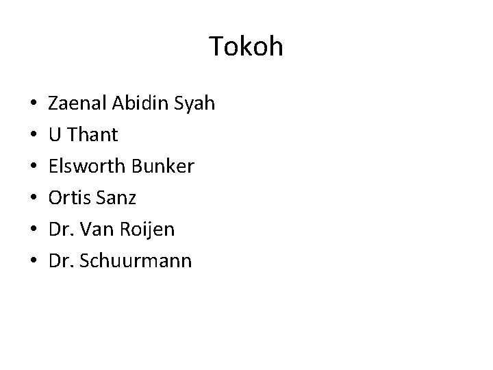 Tokoh • • • Zaenal Abidin Syah U Thant Elsworth Bunker Ortis Sanz Dr. Van Roijen Dr. Schuurmann