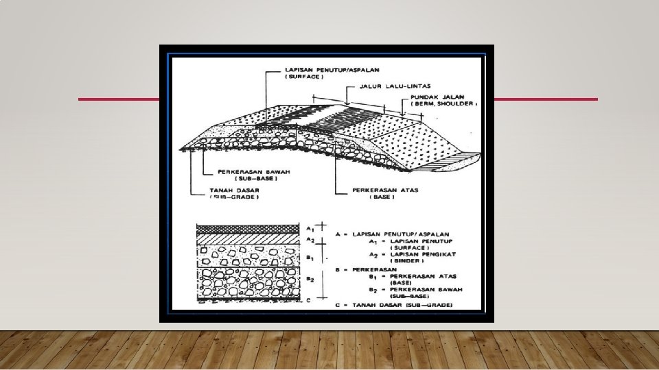JENIS KONSTRUKSI PERKERASAN LENTUR • Macadam yaitu jenis konstruksi lentur yang menggunakan material lapisan pondasinya batu pecah tetapi penyusunannya secara melintang. • Telford yaitu jenis konstruksi lentur yang menggunakan material lapisan pondasi batu pecah tetapi penyusunannya secara vertikal. Jenis bahan pengikat • Aspal keras (aspal cement) • Aspal Cair • Aspal emusi