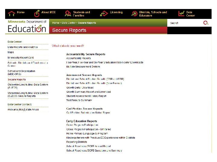 The P-File: Data Submission Submit to MDE via Perkins Website http: //education. state. mn. us/MDE/dse/datasub /Carl. Perkins/ • One person per district is authorized to submit P-file • Contact MDE for directions to identify district personnel to upload data file • Submit P-file by DATE - No extensions granted
