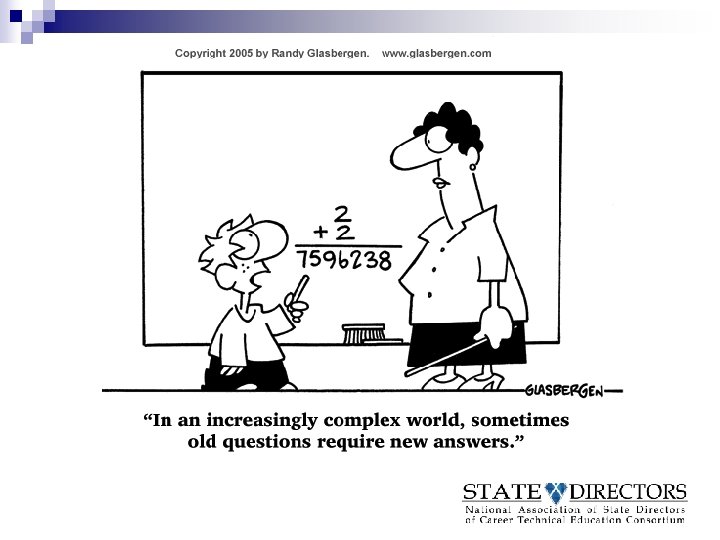 Spirit of the New Law n Leading CTE into the 21 st century ¨ Global competition ¨ Program improvement ¨ Ensuring modern, durable and rigorous CTE programs
