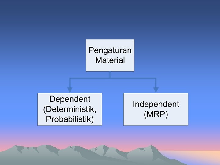 Model Deterministik • Tidak boleh ada kekurangan persediaan artinya karena demand dan lead time dapat diketahui dengan pasti maka kekurangan persediaan dapat dihindari. • Pemesanan datang sekaligus • Kapasitas gudang dan modal cukup utk menampung dan membeli pesanan. • Pembelian satu jenis item.