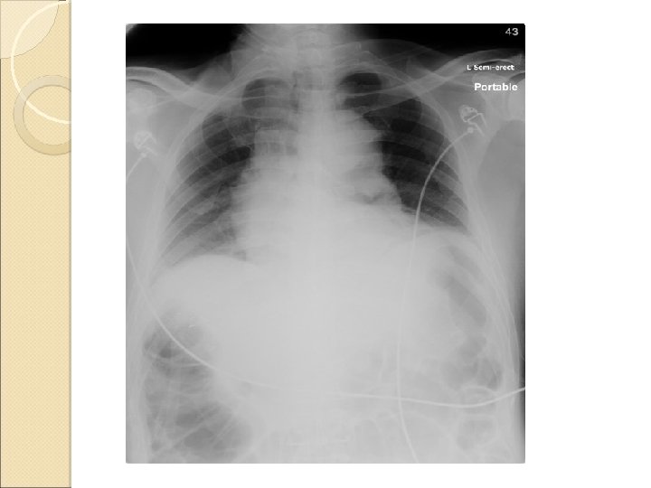 Developed abdominal distension with post-op ileus on D 3 Increasing O 2 requirement and desaturation noted in general ward Readmitted ICU on D 4 Required 12 L O 2 on admission to ICU ABG on O 2: unremarkable