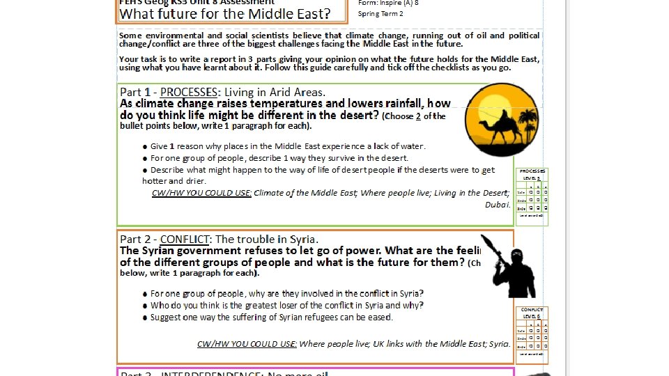 Key Geography Aspects – 7 strands, progress ‘ladder’ approach to assessment Language Processes (Human & Physical) Skills Conflict Decision Making Sustainability Interdependence