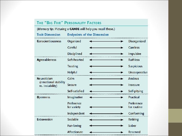 Trait Perspective • Describes Personality traits • Myers-Briggs test • Introversion and extraversion • Big Five
