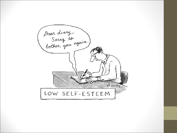 The Self • Selves? • Spotlight Effect – people don’t notice us nearly as much as we think they do • Clothes, public speaking • Self-esteem – feeling of self-worth – cause or consequence? • People whose self-esteem is damaged are more likely to put down others or show racial prejudice. They tend to be thin-skinned and judgmental • Who commits the most violent crime?