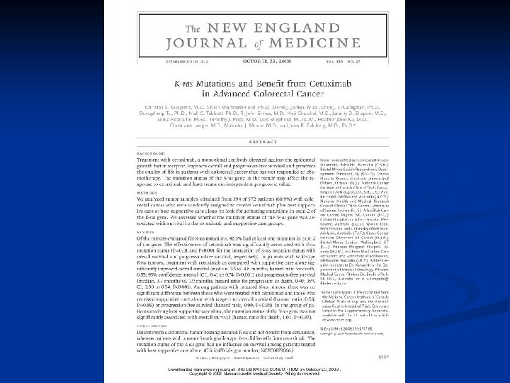 Personalized Oncology is Here Today n Estrogen receptor over-expression in breast cancer n n HER 2 amplification in breast cancer n n Low score for ER+ node - = hormonal rx KRAS in colorectal cancer n n Trastuzumab, Lapatinib Oncotype. Dx in breast cancer n n Anti-estrogens, aromatase inhibitors WT KRAS = cetuximab or panitumumab EGFR mutation or amplification in NSCLC n EGFR inhibitor