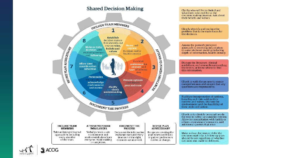 “Person-centered decision making (PCDM) is a collaborative process that allows patients and their providers to make healthcare decisions together, taking into account the best scientific evidence available, as well as the patient’s values and preferences. ”(8)