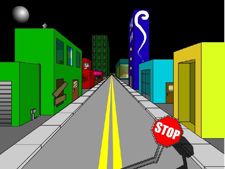 2 point perspective Q: How do you start a two point perspective drawing? A: With a vertical line.