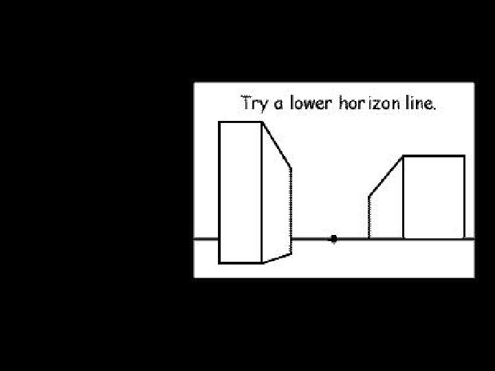 Assignments 1 & 2 • Assignment #1: Let's draw a box • using one-point perspective. Using white scratch paper, first draw a horizon line about one-third down your page. Mark a spot roughly in the middle of the line. That's your vanishing point. Now, draw a rectangle about two-thirds down the page, roughly in the middle. Lightly draw lines from the top two corners to the vanishing point. • Assignment #2: Now take the same skills that you used in assignment #1 to create a One Point Perspective Drawing of your choice on a 12” X 18” white drawing paper, you must fill the whole page to complete this assignment. You cane create anything from a city scene to something in nature, also if you chose to use some type of lettering to illustrate this skills that would be great! Have fun creating!!