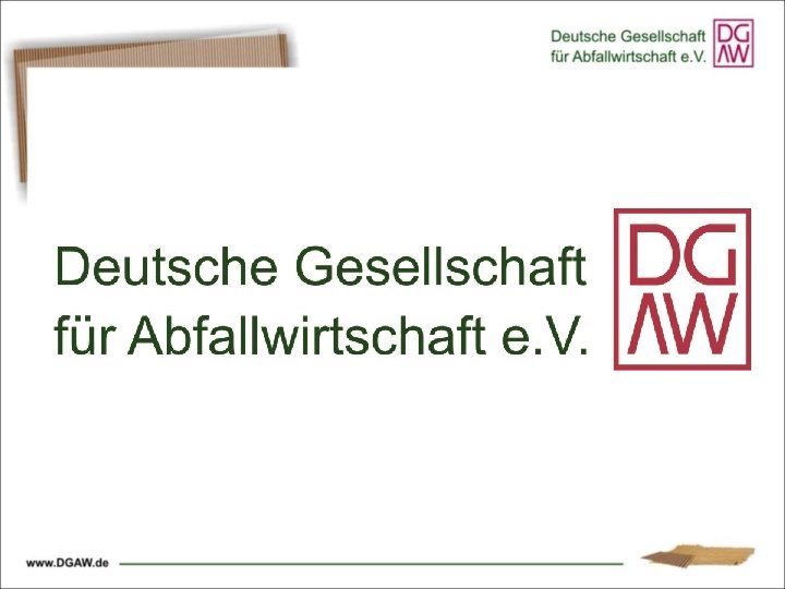 Deutsche Gesellschaft für Abfallwirtschaft e. V. – die Plattform für Produktverantwortung und Ressourcenschonung • gemeinnütziger Verein, seit 1990 aktiv • Zielsetzung – Ökologische Weiterentwicklung der Abfallwirtschaft • freier, Interessen-ungebundener Dialog • rund 440 Mitglieder