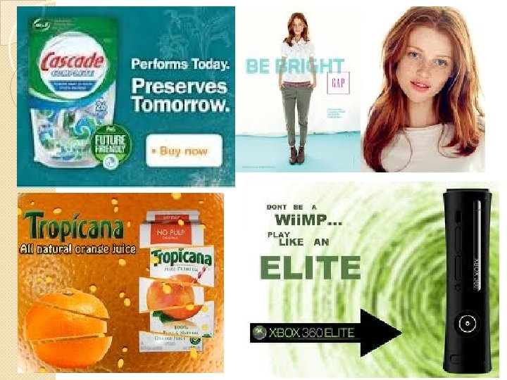 Avant-Garde Advertisers make it seem that the product is so new that you will be the first on the block to have it. http: //www. youtube. com/watch? v=16 h. PBsw 2 Uy 4 http: //www. youtube. com/watch? v=b. Jafi. CKli A 8