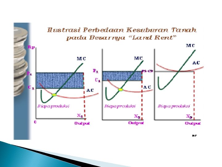 1. 4. Teori Sewa Tanah Ricardo (1) q Anggapan dasar: v. Biaya produksi menentukan harga pangan v. Semakin kurang subur lahan yang digunakan untuk produksi pangan, semakin mahal ongkos produksinya