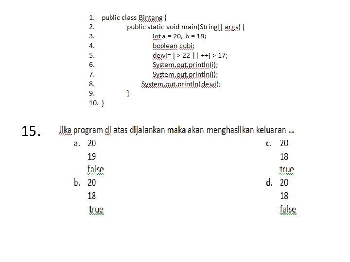 13. Jika program di atas dijalankan maka pada baris ke 4 akan menghasilkan keluaran … a) b) c) d) aha. Dewa ha. Dewa