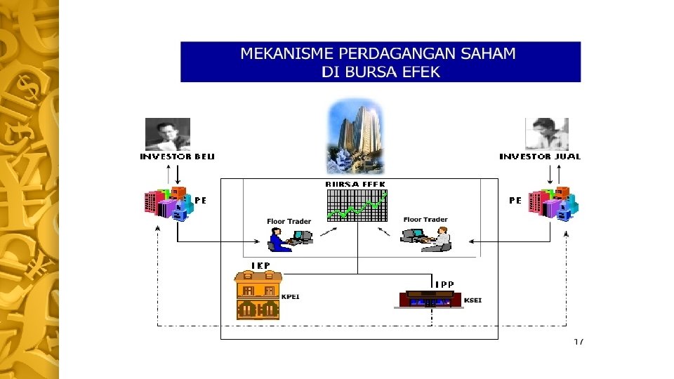 PROSES PERDAGANGAN SAHAM INVESTOR BELI RP PIALANG BELI BURSA EFEK JAKARTA WPPE (PIALANG) SISTIM TAWAR MENAWAR & NEGOSIASI INVESTOR JUAL SERTIFIKAT SAHAM PIALANG JUAL SERTIFIKAT SAHAM RP PROSES PERDAGANGAN 24