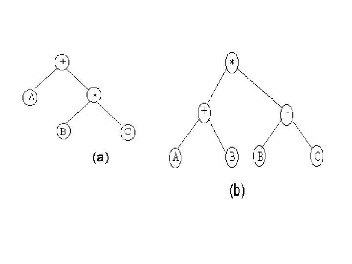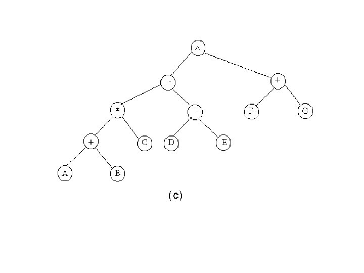Berdasarkan Gambar diatas, apabila dilakukan kunjungan secara Pre. Order, maka akan diperoleh Notasi Prefix dari persamaan yang digambarkan tersebut, yaitu : +A*BC (Gambar. a) *+AB-BC (Gambar. b) ^-*+ABC-DE+FG (Gambar. c) Jika dilakukan kunjungan secara In. Order, akan diperoleh Notasi Infixnya, yaitu : (A+(B*C)) (Gambar. a) ((A+B) * (B-C)) (Gambar. b) (((A+B) * C) – (D-E)^(F+G) (Gambar. c) Jika dilakukan kunjungan secara Post. Order, akan diperoleh Notasi Postfixnya, yaitu : ABC*+ (Gambar. a) AB+BC-* (Gambar. b) AB+C*DE-FG+^ (Gambar. c)