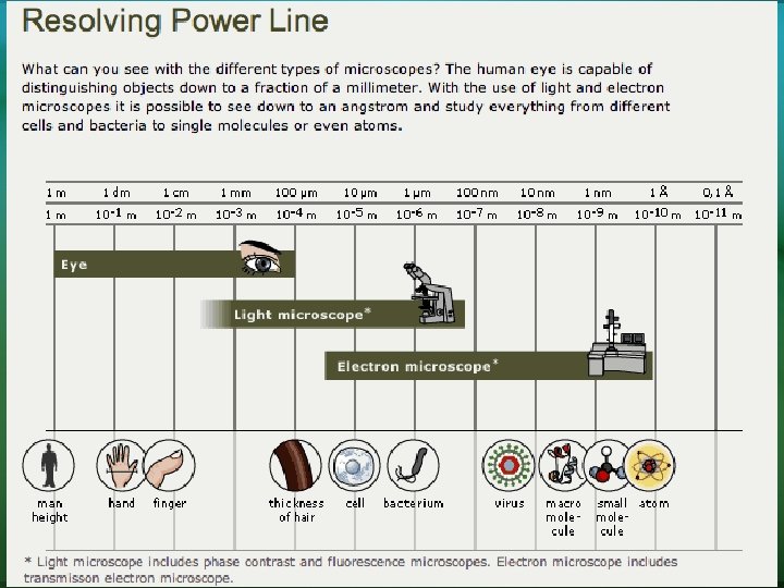 Mikroskop § Pembesaran (magnification): kemampuan mikroskop untuk memperbesar ukuran objek yang sebenarnya § Resolusi (resolution): kemampuan mikroskop untuk menunjukkan sesuatu secara terperinci dengan jelas
