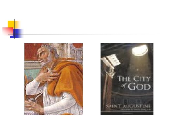 n n n KARYANYA CITY OF GOD (CIVITAS DEI), PERTENTANGAN ANTARA KERAJAAN DUNIA DENGAN KERAJAAN TUHAN DAN KERAJAAN TUHAN YANG MENANG. SEJARAH TIDAK DITENTUKAN OLEH MANUSIA MELAINKAN OLEH POLA DAN RENCANA TUHAN. SEGALA PROSES SEJARAH DI BAWAH PIMPINAN DAN PERENCANAAN TUHAN. KARYA LAINNYA : CONFESSIONS (MEMOARNYA SEBELUM MASUK KRINTEN), ON THE TRINITY (TEOLOGI KRISTEN), ON FREE CHOICE OF THE WILL (MENGAPA TUHAN MEMBERIKAN MANUSIA KEHENDAK BEBAS YANG DAPAT DISALAHGUNAKAN. MENINGGAL PADA 28 AGUSTUS 430.