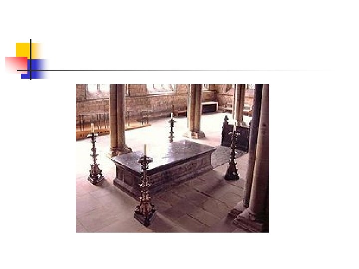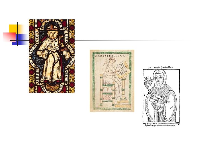 VENERABLE BEDE (673 -735) n n n LAHIR DEKAT BIARA INGGRIS WARMOUTH SEKITAR TAHUN 673. UMUR 7 TAHUN MASUK BIARA, UMUR 9 TAHUN MASUK KOMUNITAS JARROW. TAHUN 692 JADI DIAKEN (PELAYAN GEREJA), TAHUN 703 JADI PENDETA. MENINGGAL TAHUN 735, DIMAKAMKAN DI KATEDRAL DURHAM. BEDE MENULIS TENTANG INJIL, BAHASA LATIN, KEHIDUPAN PARA SANTO, KRONOLOGI DAN SEJARAH.