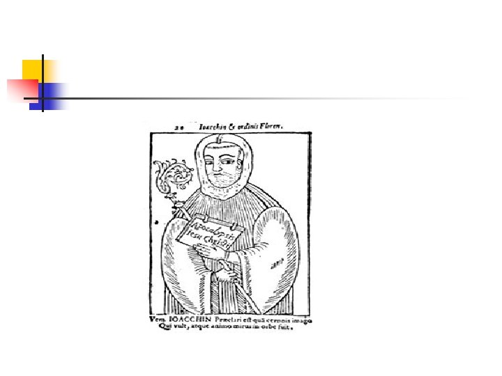 JOSCHIM VAN FIORE -1202) n n n (1145 SEJARAH MERUPAKAN PENCERMINAN RAHMAT KARUNIA TUHAN DI DALAM KEMANUSIAAN. PERIODISASI SEJARAH : PERTAMA : PERIODE BAPA. KEDUA : PERIODE PUTERA. KETIGA PERIODE ROH KUDUS. KETIGA PERIODE ITU DIHUBUNGKAN GARIS LURUS MENUJU TUJUAN AKHIR YAITU KEMULIAAN DI SURGA.