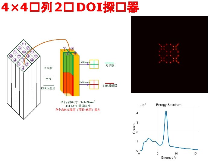 4层DOI探测器与2层DOI探测器Flood图及 能谱图实测比较 2层 4层 Binqing Zhao, et al. Depth encoding PET detectors usingle layer crystal with different reflector arrangements along depths. 2018 IEEE NSS/MIC.