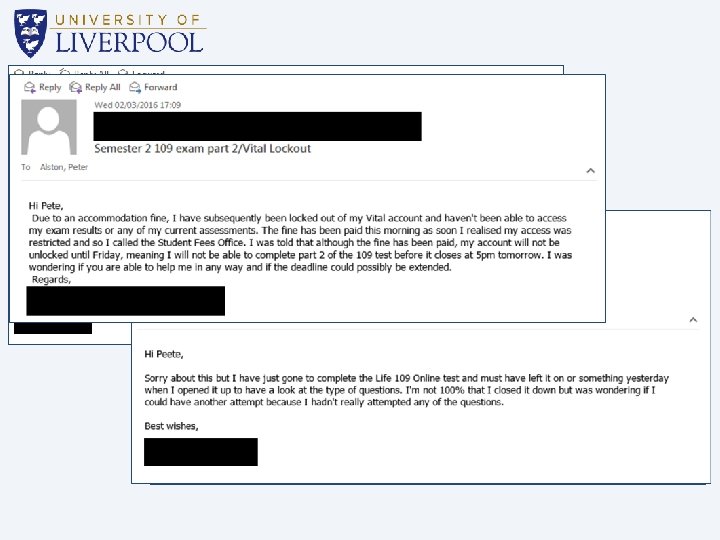 • Staff engagement – Deciding on questions and making them available – Resorting to ‘old practices’ • Facilities – 400+ students taking a test at any one time will always lead to problems! – Smaller modules (100) are no different … • Technology limitations/failure – ‘Downtime’ (Systems/Wi. Fi) – Devices – ‘Force completion’ • ‘Irate’ students Challenges faced What we were up against …