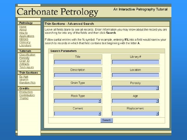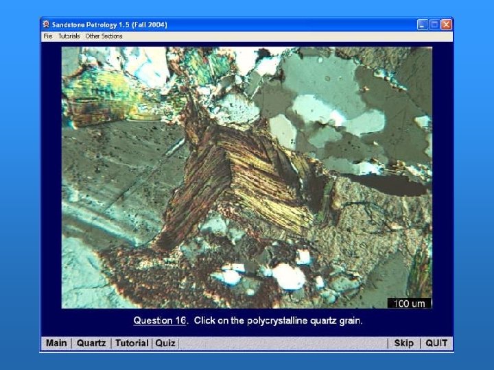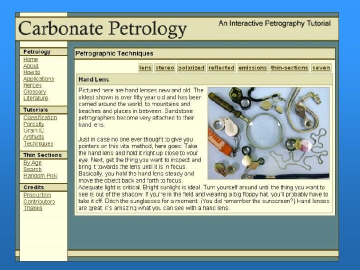 Building the Tutorial: the Team • • • 2 sandstone petrographers 1 carbonate petrographer/programmer 2 undergraduate geology majors 3 petrography instructors 5 petrography students