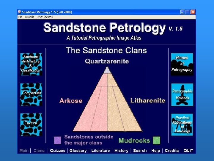 Sandstone Clans Quartzarenite Arkose Litharenite Goals Provenance Diagenesis Tutorial Browse Quiz Other sandstones Mudrocks