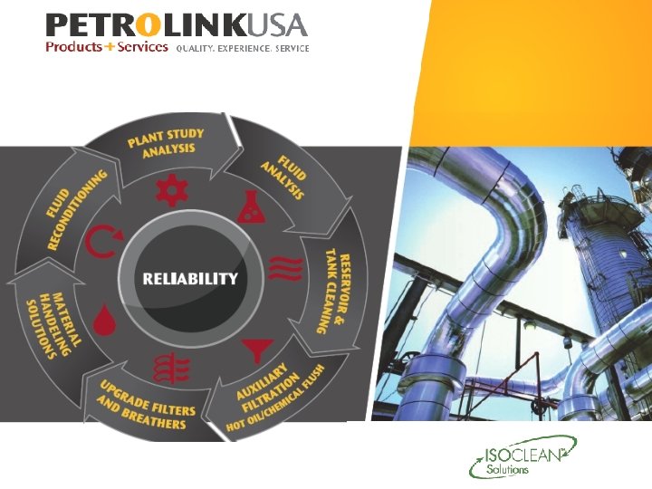 Product & Services • Varnish Removal • Side-stream electro-static filtration • Solvent extraction • Machine Clean 23 • Boost VR • Oil soluble extraction • Mobil System Clean • Depth media filtration • Industrial Lubricant Reconditioning • Vacuum dehydration and high efficiency filtration (B 11000: 1 micron @99. 5% efficient) • Achieve particle counts as low as 15: 13: 11 • Water below 80 ppm • On-site or at a centralized location • Hydraulic, Gear, Turbine, Cutting, Compressor, etc.