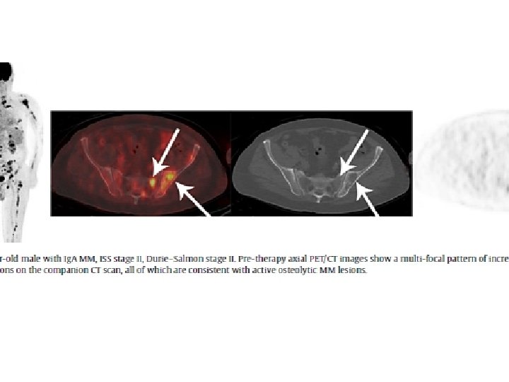 2014 * 18 F-FDG • Increased uptake on PET is not adequate for diagnosis M. M. Underlying osteolytic bone desctruction is needed. • Recommended in smouldering M. M and solitary plasmocytoma “Each focal lesion must be 5 mm or more in size”