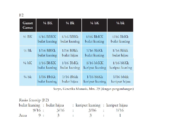 Setelah sesama F 1 tersebut dikawinkan, dihasilkan keturunan F 2 sebanyak 2 lalat buah betina bermata merah dan 2 lalat buah jantan masing-masing bermata merah dan putih.