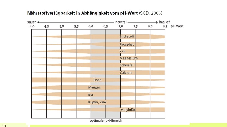 • Grundsatz je schwerer der Boden, desto höher der p. H-Wert! • Fällt p. H-Wert unter Optimum Gesundungskalkung!