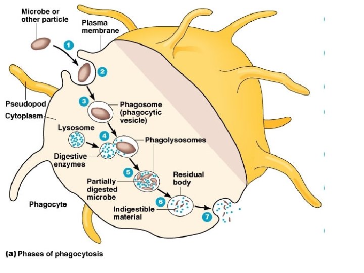 Phagocytosis • Process by which solid particulates like bacteria, dead tissue or other bits of microscopic materials are engulfed and destroyed by cells termed as ‟Phagocytes ˮ.