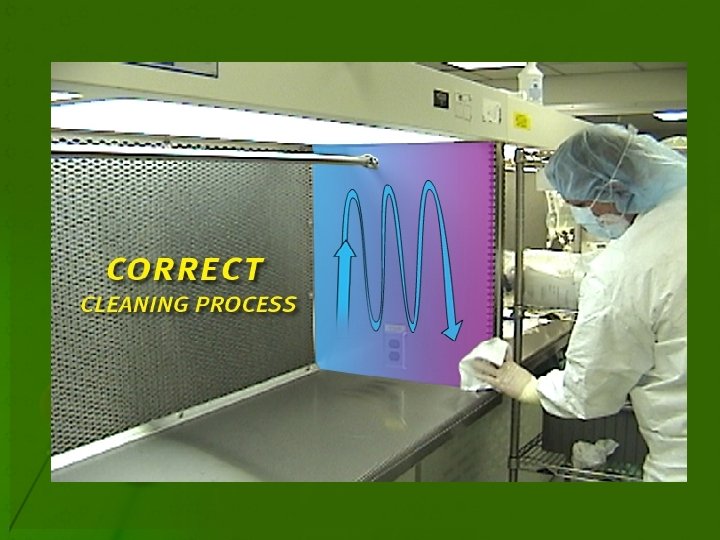 Important Precautions During Procedure • 1 - All aseptic techniques should be performed at least 6 inches within the hood to prevent the possibility of contamination from room air entering the hood. • 2 - A laminar flow hood should be left operating continuously. • 3 - If hood is turned off it must run for 30 minutes to reestablish laminar air flow and then be cleaned prior to use. • 4 - Before use, all interior working surfaces of the laminar flow hood should be cleaned from back to front away from the HEPA filter. • 5 - Nothing ( cleaning solution, syringes aspirates, glass from ampoules and fluids) should be permitted to come in contact with the HEPA filter.