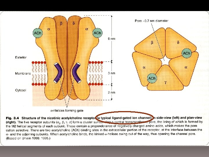 1. Ligand-gated ion channels: • = ionotropic receptors • Involved mainly in fast synaptic transmission • Time scale: milliseconds • Exp: GABA-R, nicotinic Ach-R 2. G-protein-coupled receptors: • = metabotropic receptors • G-protein is a membrane protein (consist of subunit) • Drug binds to -subunit activates other subunit • Time scale: seconds • Exp: muscarinic Ach-R