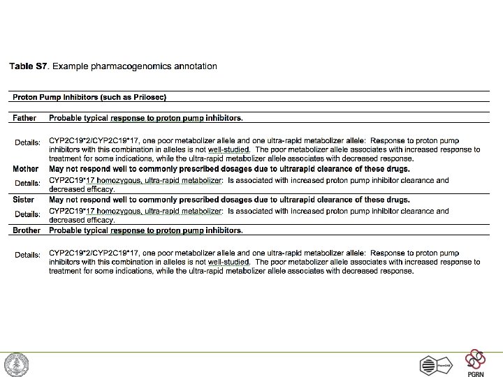 Variant annotation highlight • • Patient is heterozygous for a null mutation of CYP 2 C 19 (metabolizing enzyme) CYP 2 C 19 critical for metabolism of: • proton pump inhibitors (lansoprazole, • • omeprazole, pantoprazole, rabeprazole) antiepileptics (diazepam, Norphenytoin, phenobarbitone) Amitryptyline, citalopram, chloramphenicol, clopidogrel, indomethacin, nelfinavir, propranolol, R-warfarin, imipramine. . .