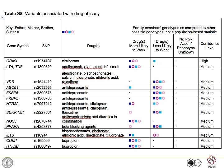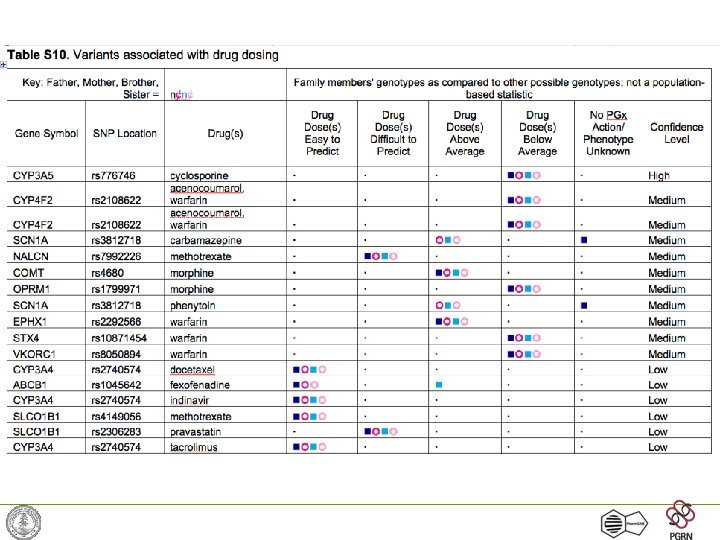 Pharm. GKB Annotation Method • Evaluate 2500 SNP annotations for direct drug relevance to patient 0 • Evaluate CNVs in known important genes (VIP, PK, PD) • Evaluate novel SNPs in known important genes (VIP, PK, PD)