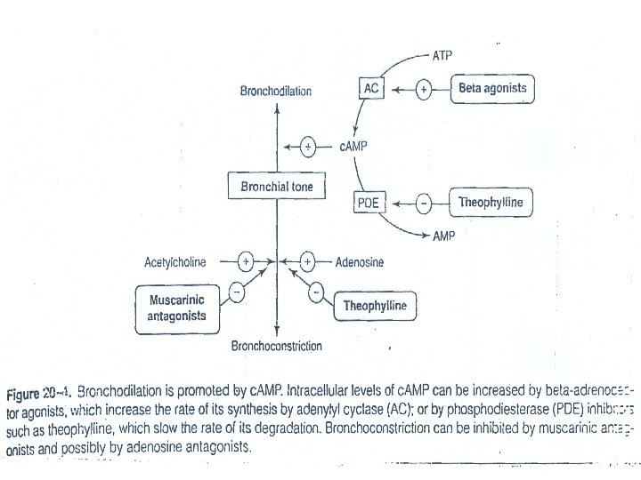 ATP Bronchodilation Adenyl cyclase B-agonists c. AMP Bronchial tree Adenosine Bronchoconstriction Phosphodiesterase Theophylline 3, 5, AMP
