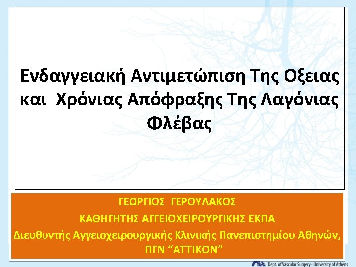 Pharmacomechanical thrombolysis for DVT (Attract trial) • Τhe Attract trial that evaluated pharmacomechanical catheter directed thrombolysis (PCDT) in patients with proximal deep vein thrombosis. It showed that PCDT did not prevent PTS over 2 years, it increased major bleeding and did not influence health related quality of life or recurrent venous thromboembolism. • Ii improved leg swelling and pain in 30 days. Vedantham, 2017 N. Eng. J. Med
