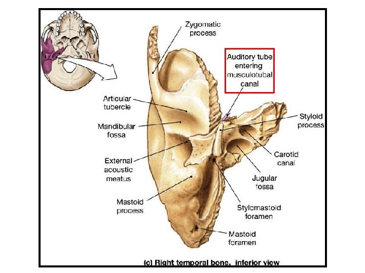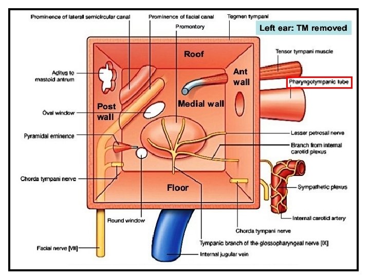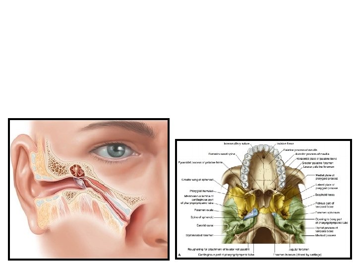 Parts v 2 parts: • Bony (Osseous) part. • Cartilaginous part. Bony (Osseous) part • Posterolateral part. Length- ~12 mm (1/3 rd of total length). • Lies between tympanic and petrous part of temporal bone. • Opens into anterior wall of middle ear cavity (tympanic cavity) • Tympanic end is small.