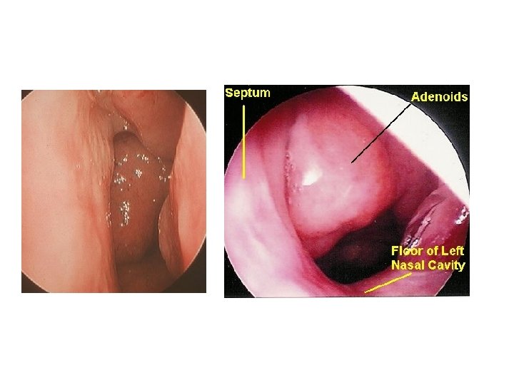 • Presentation : • nasal airway obstructive symptoms (eg, nasal congestion, snoring, sleeping with open mouths) adenoid facies • Recurrent sinusitis , otitis media ,