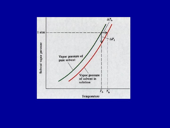 From Raoult’s Law Phexane = P 1 = X 1 Po 1 = (0. 400)(0. 198 atm) = 0. 0792 atm Pheptane = P 2 = X 2 Po 2 = (0. 600)(0. 0600 atm) = 0. 0360 atm From Dalton’s Law Ptot = P 1 + P 2 = 0. 1152 atm Mole fraction of hexane in the vapor 0. 0792 atm ’ X 1= =0. 688 0. 1152 atm Mole fraction of heptane in the vapor 0. 0360 atm ’ =0. 312 X 2= 0. 1152 atm