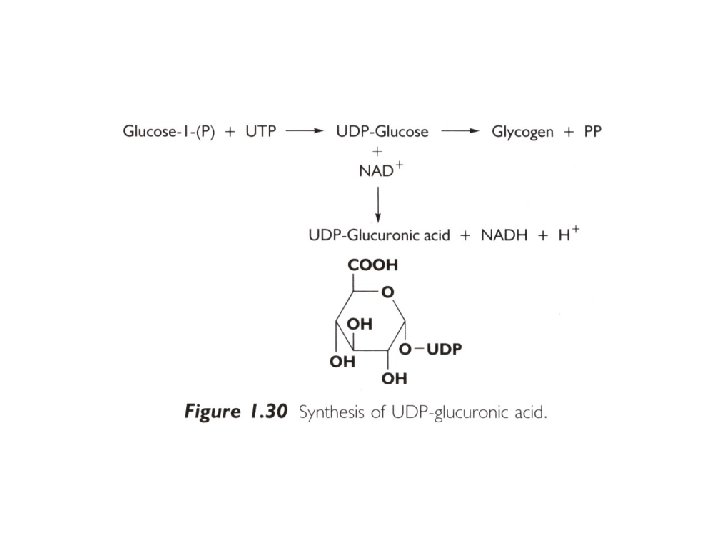 1. Glucuronidation § The mechanism of glucuronidation is one of nucleophilic substitution with inversion of configuration, -D-glucuronic acid in UDPGA forming -D-glucuronides.